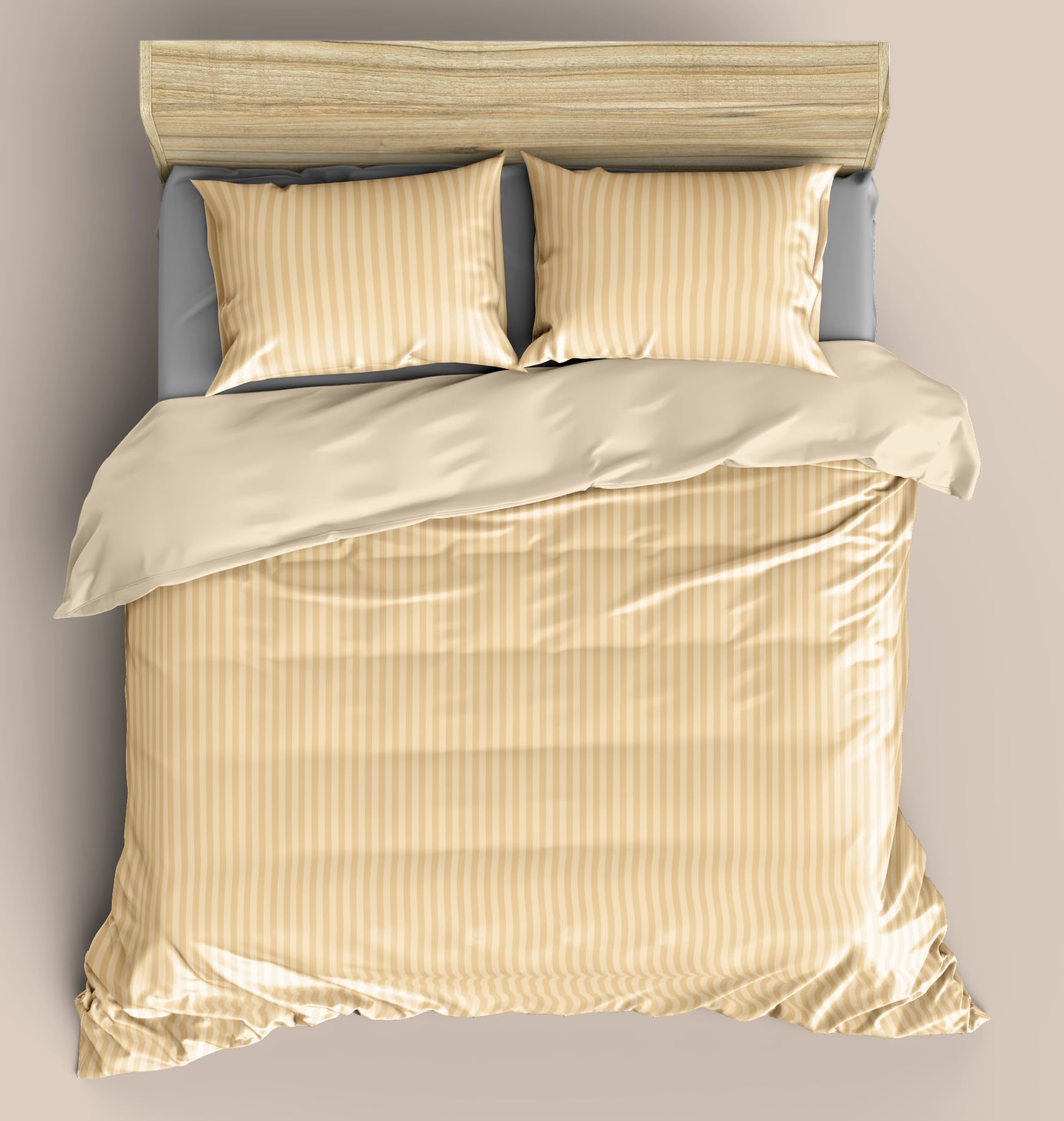 Pekozi 100% Cotton Bed Sheets For King Size Bed, 1 Bedsheet Super King Size Bed Cotton 112x108 Inch with 2 Pillow Covers | 300 TC Plain Bedsheets For King Size Bed Solid Stripes (Beige)