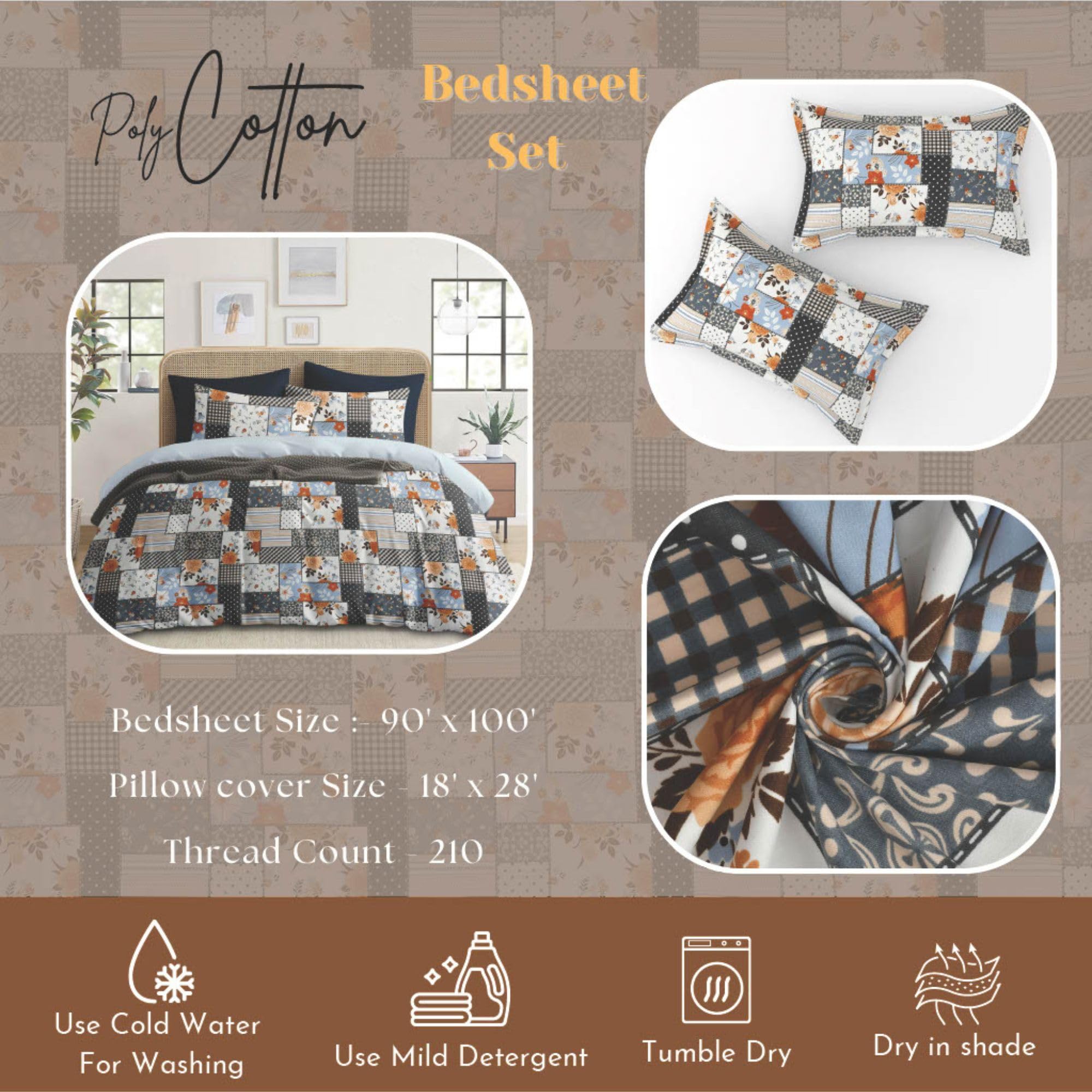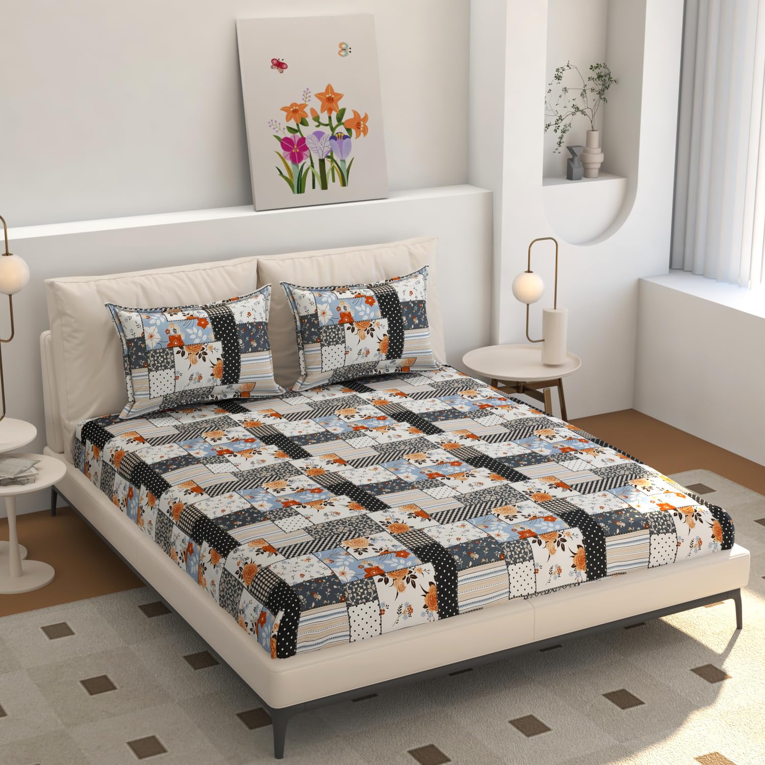 Upgrade your everyday comfort with the Pekozi Soft Cotton King Size Bedsheet Set. Designed for Indian homes, this bedsheet offers softness, durability and a perfect fit for both King and Double beds. Soft & Breathable Fabric – Cotton-rich material provides a smooth, skin-friendly feel for comfortable sleep in all seasons. Generous King Size – Measuring 228×254 cm (90×100 in), it offers full coverage and neat tucking on large beds. Coordinated Look – Includes 2 matching pillow covers to complete your bedding setup. Fade & Shrink Resistant – Built to withstand daily washing, this bedsheet maintains its colour and shape for long-term use. Perfect for Everyday Use – Suitable for master bedrooms, guest rooms, rental homes, PGs and hostels. Bring softness, durability and style to your bedroom with this easy-care, machine-washable bedsheet set from Pekozi.
